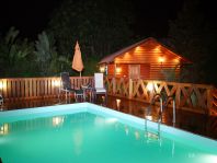 בחוץ מונחות מיטות שיזוף, דשא בחוץ, חנייה נוחה, רהיטי גן מרהיבים - בחצר, עצים עוטפים את המתחם, מגוון פרחים צבעוניים, ישנם ערסלים, פינה יפה לשבת בה.