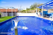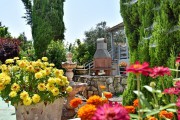 בחוץ מונחות מיטות שיזוף, נדנדה מפנקת, דשא בחוץ, מתקן מנגל, בחצר תאורת לילה, רהיטי גן מרהיבים - בחצר, עצים עוטפים את המתחם, מגוון פרחים צבעוניים, ספסלים לישיבה בחצר, פינה יפה לשבת בה.