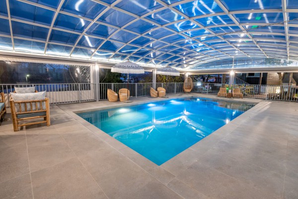 בריכת זרמים מיוחדת, מקורה ומחוממת. |