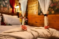 צימרים הפינה היפה של צביה מול נופים עוצרי נשמה של הכנרת והרי הגולן הירוקים ממתינה פינה יפה לאוהבים. הפינה היפה של צביה מקום קסום המוקף גינות ירוקות ומטופחות עם כסאות נדנדה וערסלים מסביב ותאורת לילה צבעונית ומיוחדת. באווירה רומנטית וקסומה מול נופה עוצר הנשימה של הכנרת ממתין למתארחים במקום ג´קוזי ספא יפני ענק משחרר מלחצים ומפנק,המעניק עיסוי עם זרמי מים חמים ומרגיעים המגיעים לכל פינה בגוף. החוויה המדהימה הזו בחצר מתגמדת לעומת החוויה בתוך הבקתות. עוד לפני הכניסה לצימר ניתן להתרשם מהציור על דלת הכניסה איך ייראה הצימר בפנים. חוויה רומנטית מתוקה עם המון נרות ופרחים בכל מקום. ריח של פריחה מתוקה וצבעונית בכל עונות השנה. מיטת העץ המפנקת עטופה מצעי כותנה צבעוניים רכים ועליהם כריות נוי מיוחדות ומולה טלוויזיה בלווין ומערכת קולנוע ביתית איכותית.לצד המיטה שולחן עץ מיוחד מעוטר זרים רעננים של פרחי העונה. המטבחון מאובזר בכל טוב עם המון הפתעות מתוקות להפיכת חופשתכם למושלמת . ג´קוזי זוגי עגול מוקף נרות ממתין לזוגות מאוהבים ולצידו שולחן ועליו יין מתוק ומשובח והמון נרות ריחניים. בפינת הישיבה מול המיטה כורסאות עץ רכות שכיף לשקוע בתוכן. במרפסת הצימר ממתינה פינת מנגל פרטית עם פינות ישיבה מוצלות בטבע מול הנוף להתאהבות אמיתית למראם של זריחות ושקיעות חלומיות בכנרת. גן עדן אמיתי לאוהבים שרוצים לפנק ולהתפנק.
